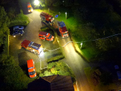 Zu einer Verbandsübung trafen sich die Löschzüge West und Nord-West der Feuerwehr Kleve am Jägerhof an der Tiergartenstraße in Donsbrüggen. Der SOS-Kinderdorf e. V. betreibt dort mehrere Werkstätten für die berufliche Rehabilitation von Jugendlichen. Die Feuerwehr durfte die Gebäude am 30. September 2021 als Übungsobjekt nutzen.