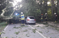 Eine Autofahrerin war gestern Abend (28. Juli 2021) auf der Uedemer Straße Richtung Kleve unterwegs, als eine mächtige Buche auf ihr Fahrzeug stürzte. Die Frau konnte das Fahrzeug eigenständig verlassen. Die Uedemer Straße war über Stunden in beide Richtungen voll gesperrt.