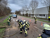 Dreimal musste die Feuerwehr Kleve heute Nachmittag (13. März 2021) zu Sturmschäden ausrücken. Ein entwurzelter Baum blockierte die Bahnstrecke von Kleve nach Bedburg-Hau.